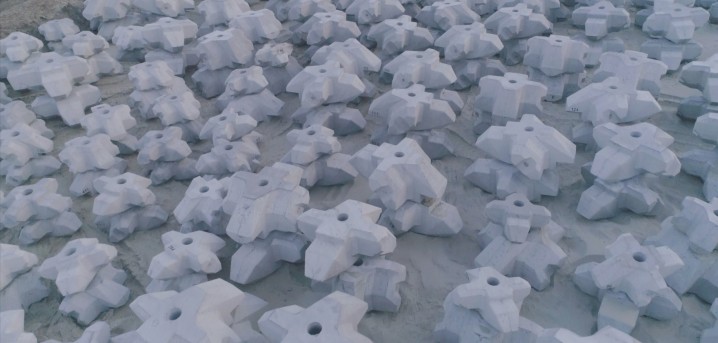 - Docelowo powstanie 10 144 charakterystycznych betonowych bloczków w trzech różnych rozmiarach, o wadze od 2,34 do 9,6 tony każdy – mówi Jacek Szymański dyrektor projektu z konsorcjum NDI/Besix. Użycie takich betonowych bloków zmniejsza ilość użytych prefabrykatów ochronnych, czyli betonu na falochronach. Skraca się też czas montażu, a zwiększa odporność na zmiany klimatyczne. Po raz pierwszy zastosowano je na zaporze wodnej Afsluitdijk – Tamie Osłonowej, będącej główną tamą i groblą w Holandii. Nasza budowa będzie więc drugą taką w Europie i na świecie – dodaje Jacek Szymański.