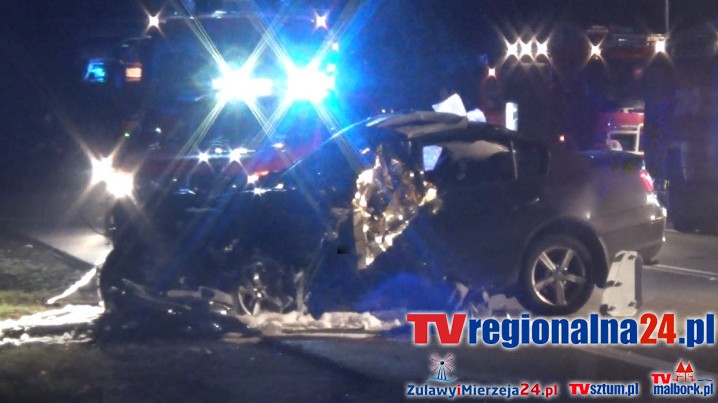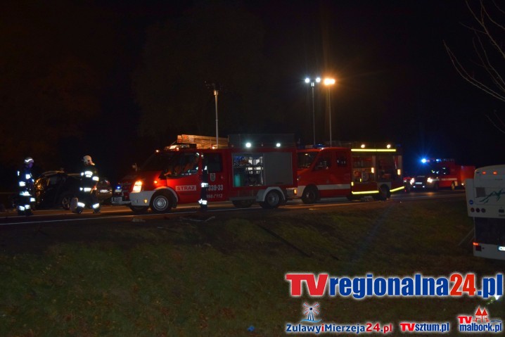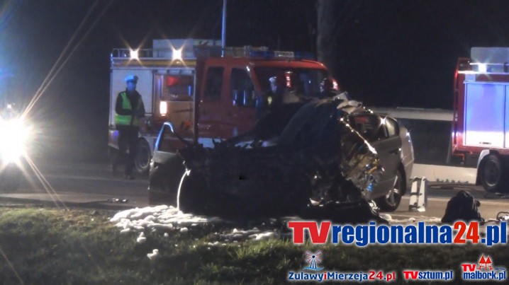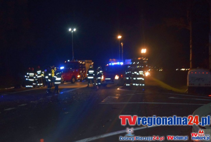 "42 - letni kierowca samochodu osobowego poniósł śmierć na miejscu. Jechało nim 19 osób, 13 jest rannych, dwie są w stanie ciężkim."